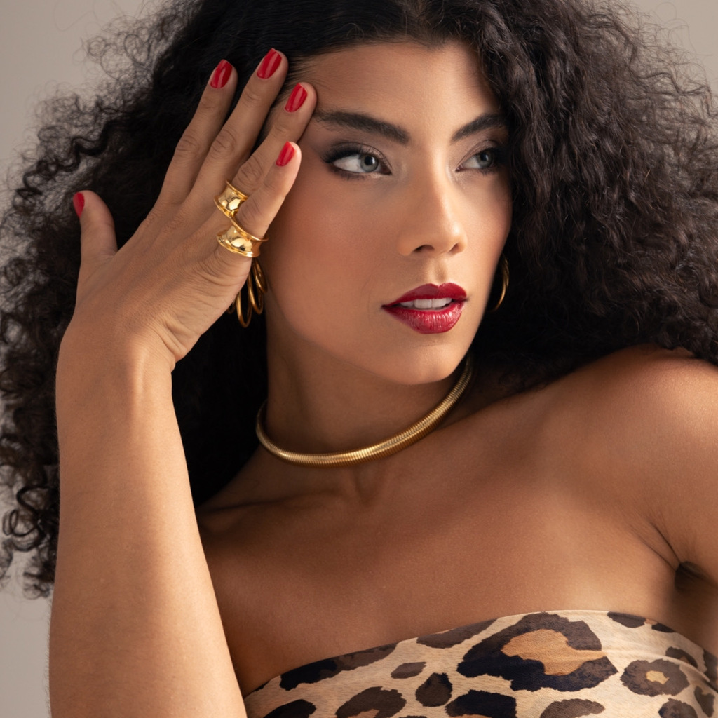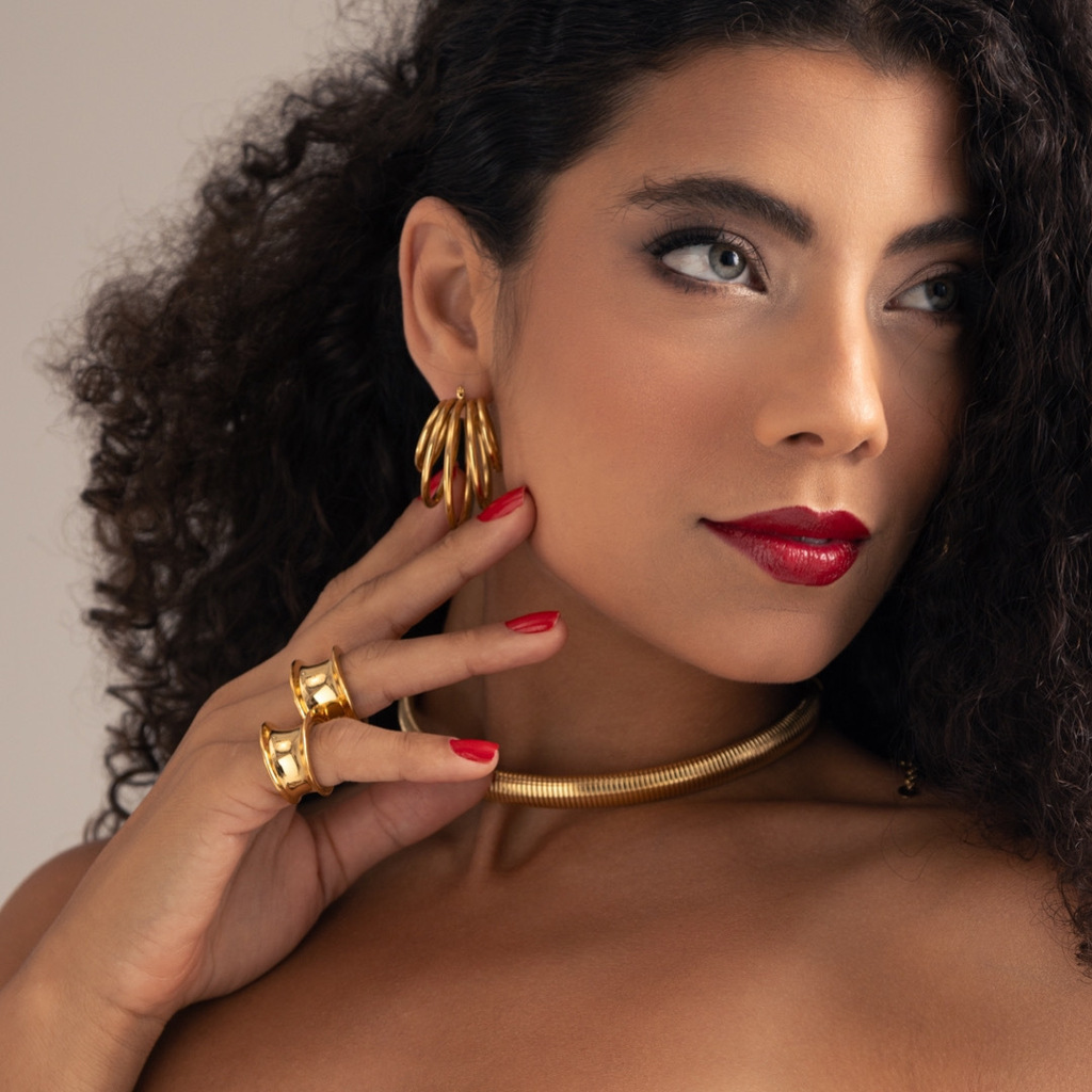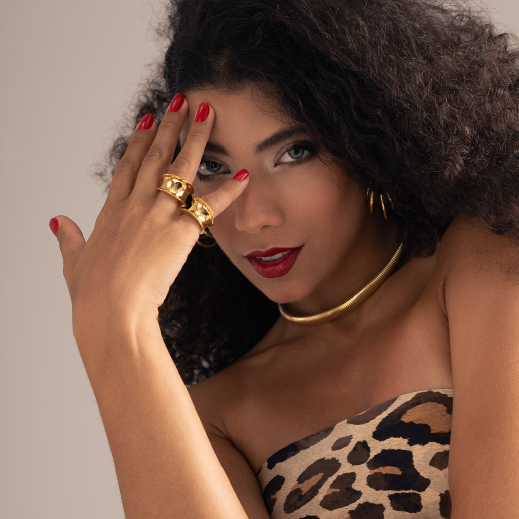Anel em aço inoxidável dourado.