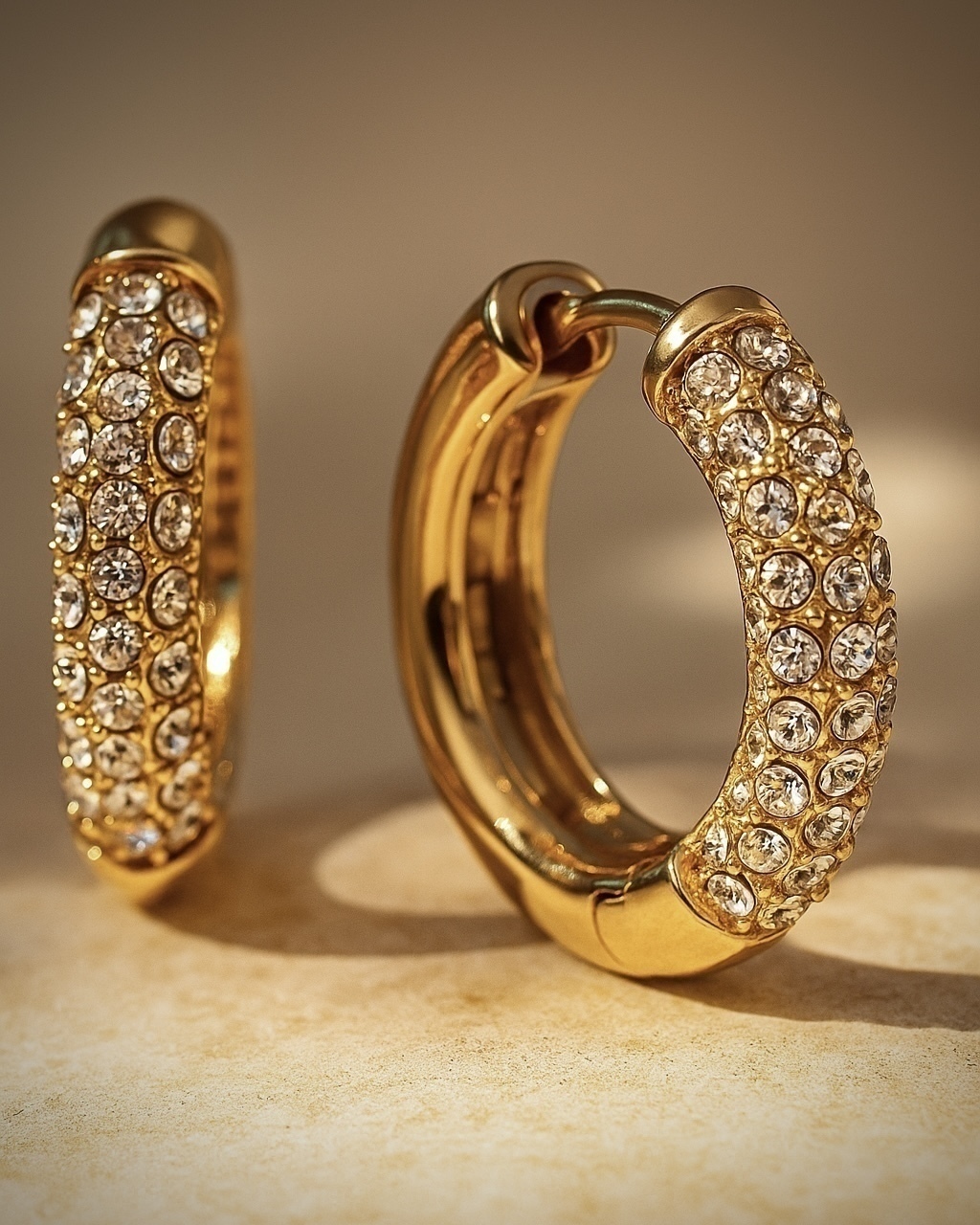 Argola de clique. 100% em aço inoxidável, cravejada com zircônias brancas.