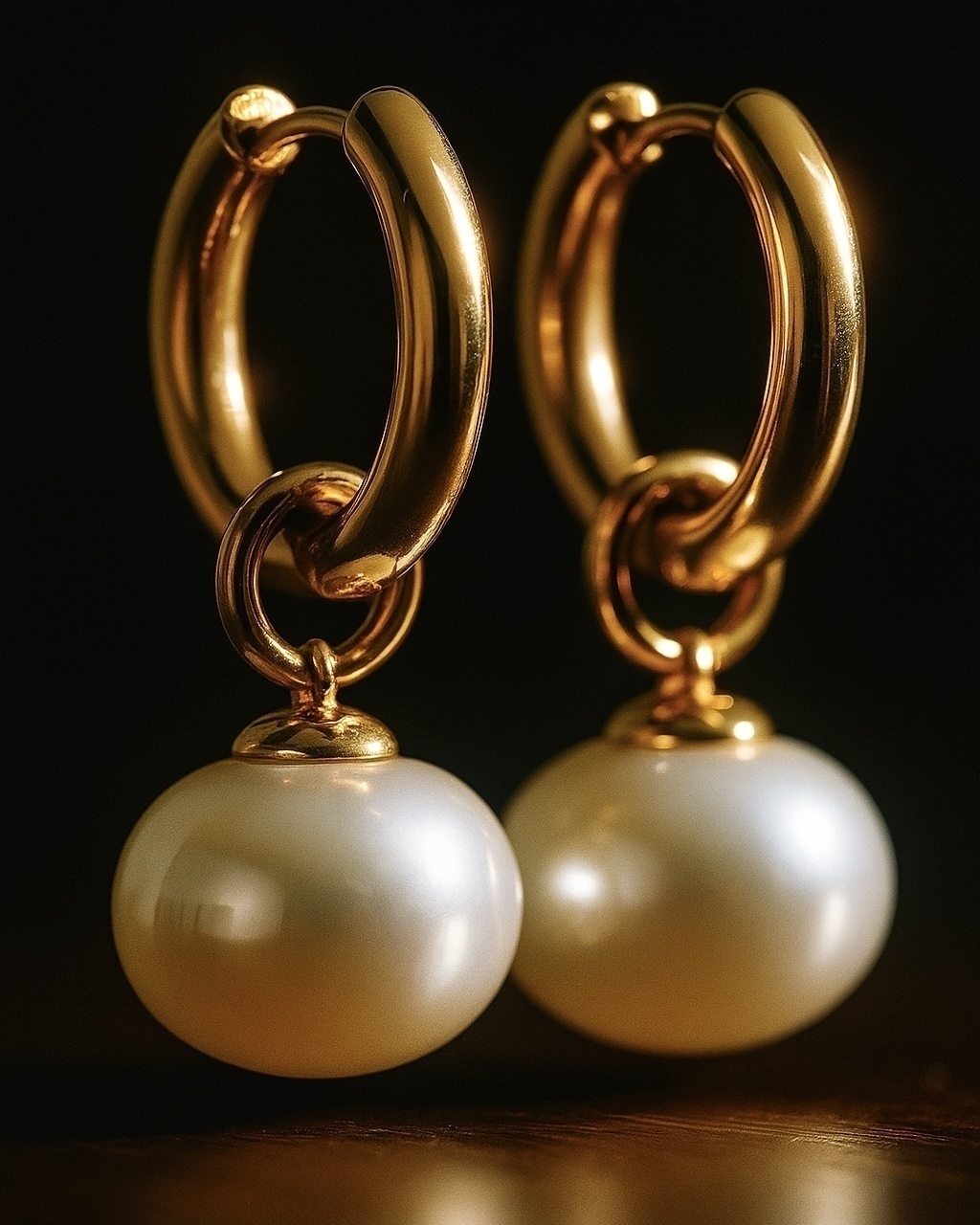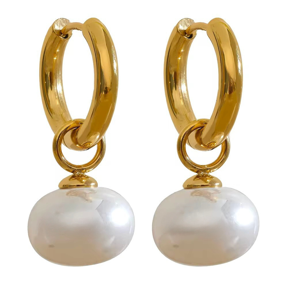 Argola de clique 100% em aço inoxidável, com pingente de pérola de resina esmaltada.