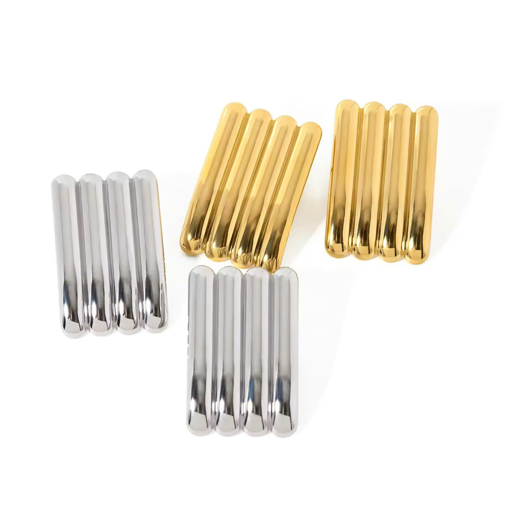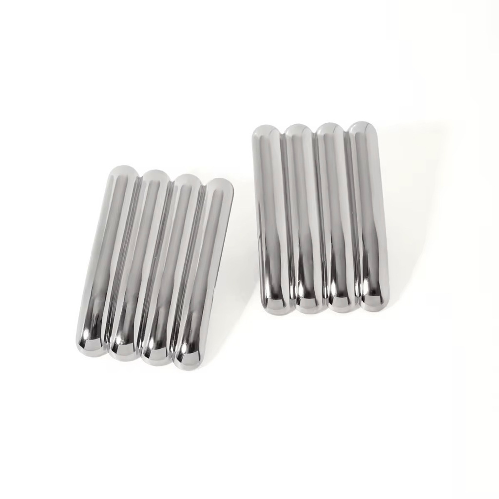 Brinco grande, 100% em aço inoxidável. Design com leve inclinação na parte inferior para melhor vestir.