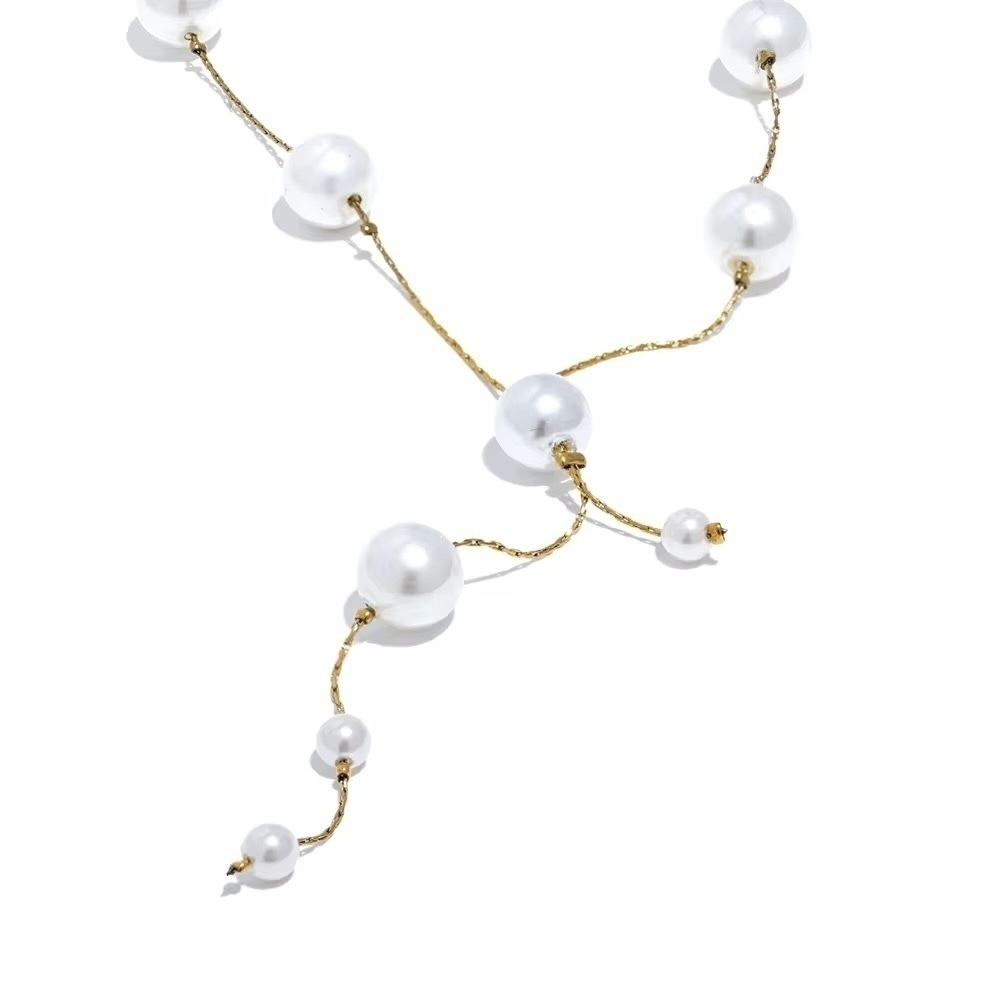 Colar em aço inoxidável, com pérolas de resina esmaltadas.