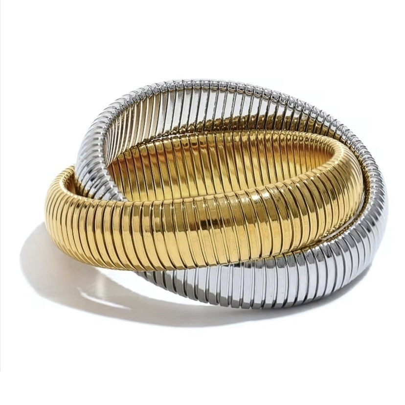 Pulseira dupla em aço inoxidável, dourada e prata.